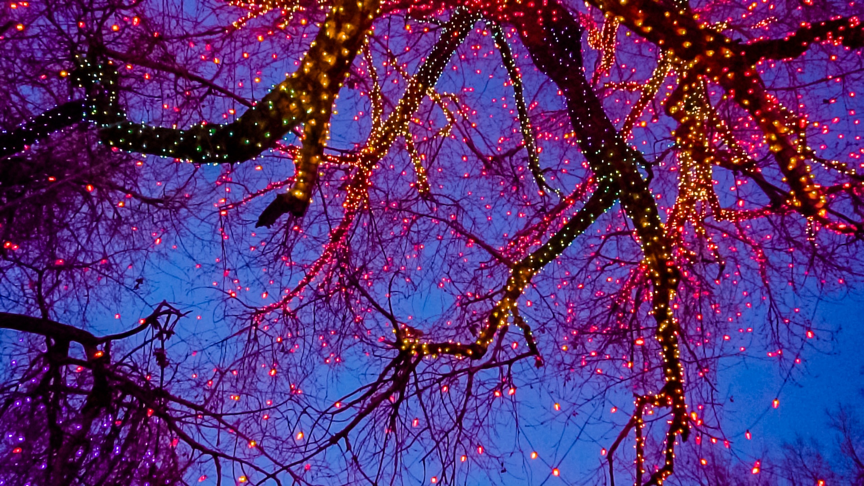 Glowing Christmas Lights And Trees With Multiple Colors